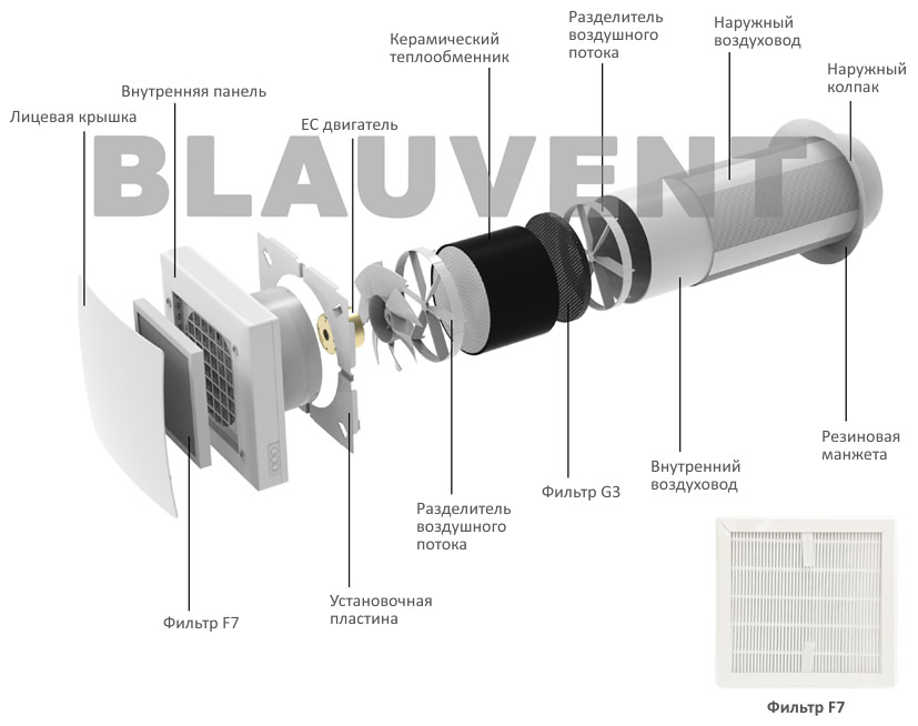 В режиме вытяжки тёплый воздух из помещения проходит через керамический теплообменник, нагревая его. В режиме притока свежий воздух с улицы также проходит через нагретый теплообменник и подогревается без дополнительных затрат электроэнергии.